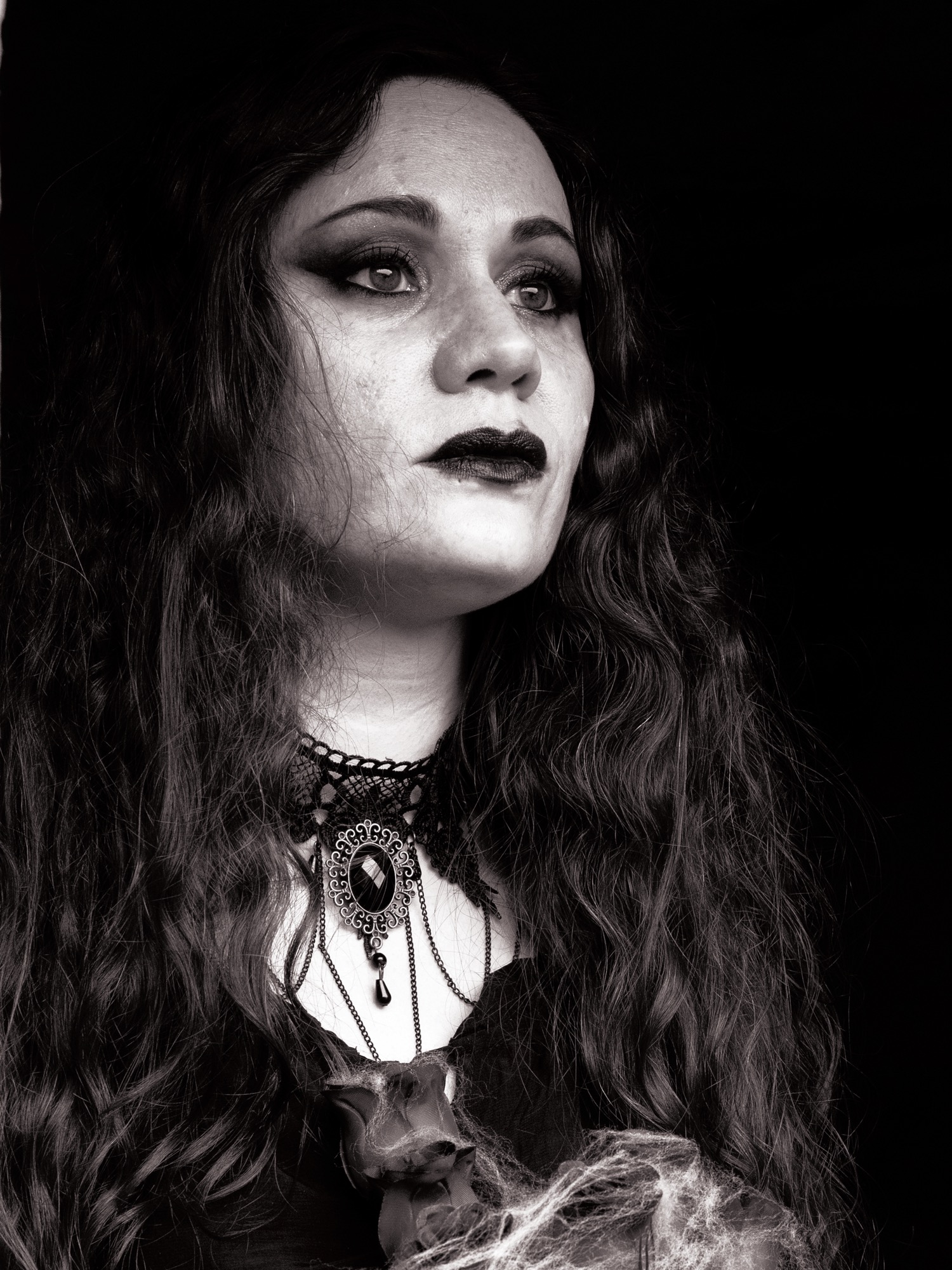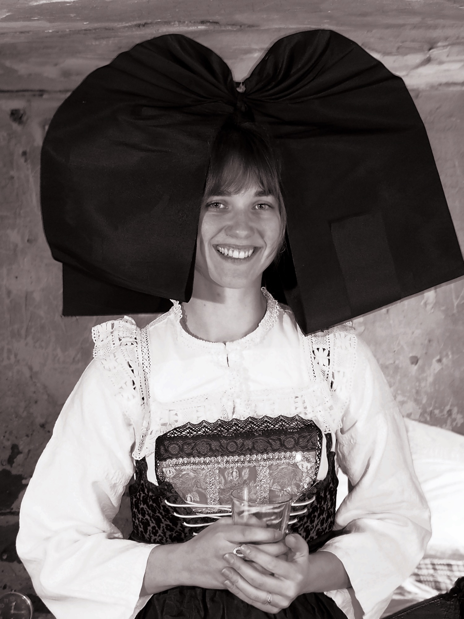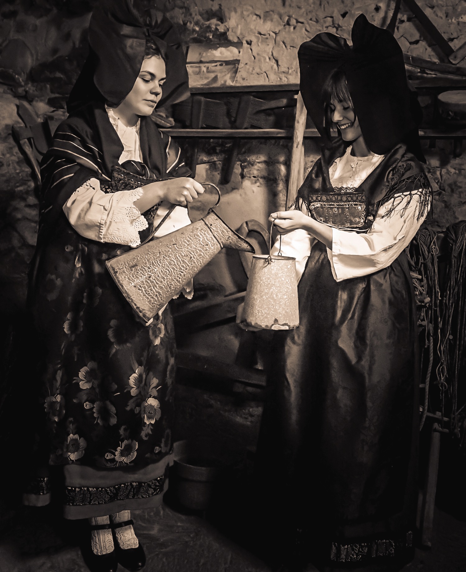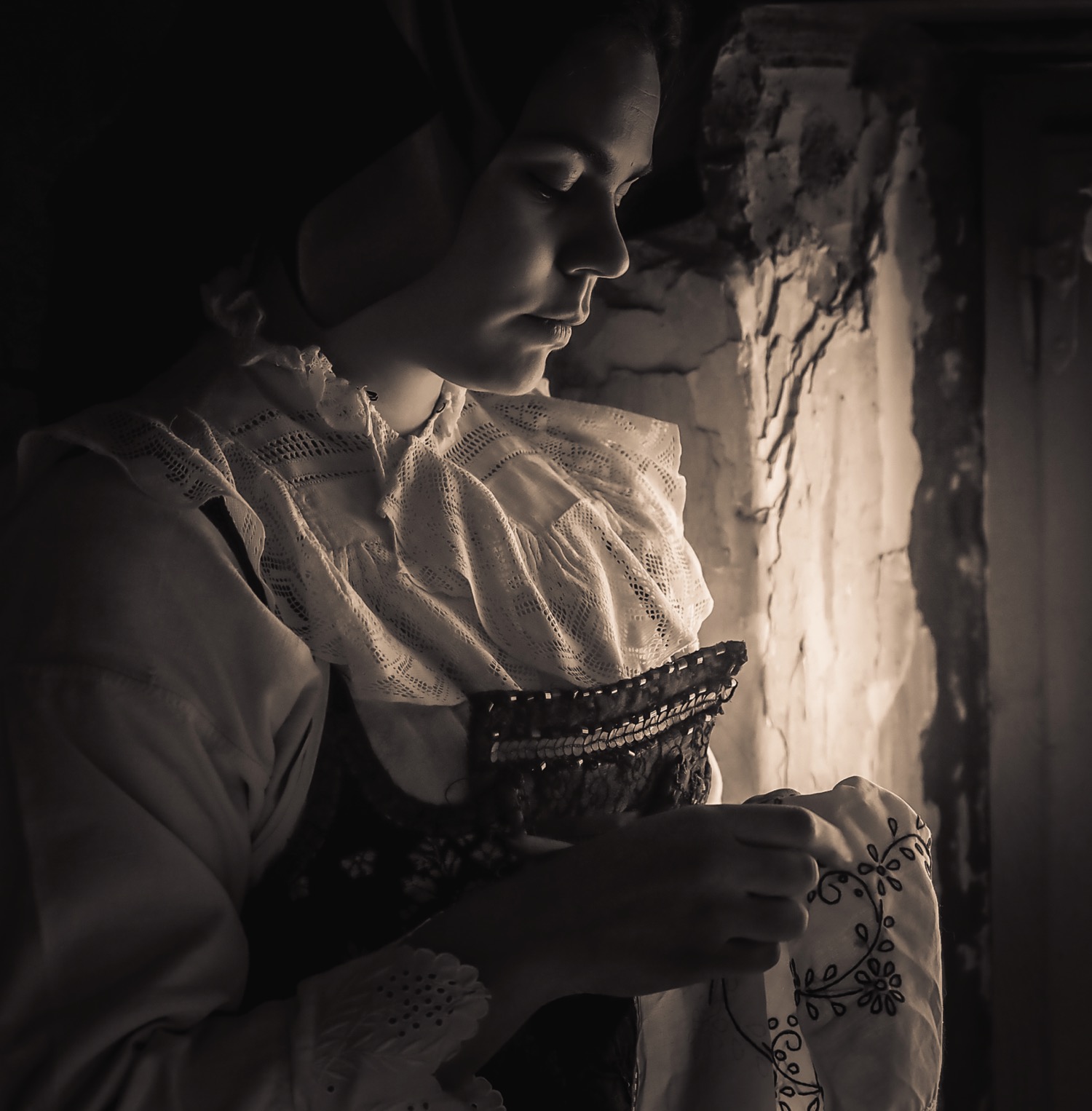 Que nous racontent ces photos de l’histoire des lieux ? Les rochers, les murs, les forêts semblent être les gardiens de secrets enfouis, portant en eux la trace de ceux qui ont habité ces lieux austères. Les ombres du passé, les silences d’antan, résonnent ici à travers chaque image. Deux Alsaciennes se dessinent en ombre et lumière, comme des invitées énigmatiques, presque intemporelles. On croit entendre les murmures de la sorcière, étrange et fascinante figure qui traverse l’exposition. Elle est l’autre, celle qui unit le visible et l’invisible, celle qui nous invite à aller au-delà des apparences.